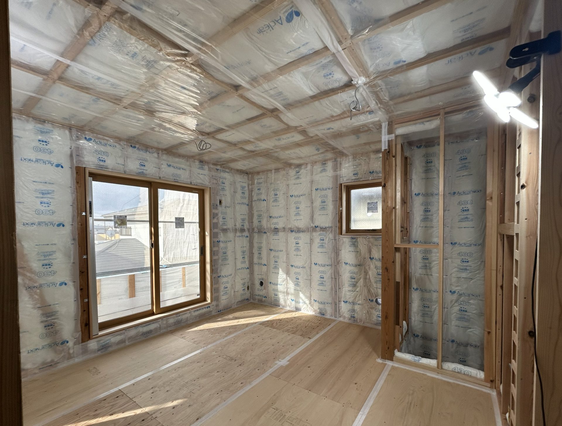 郡山リノベーションモデルハウス、断熱工事が終わりました。